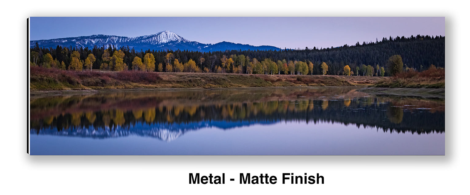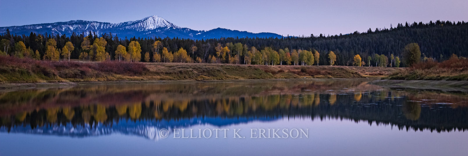 Limited Edition: 500On a quiet evening near Oxbow Bend, still waters of the Snake River allow for an autumn kaleidoscope to be reflected as a pink and purple light closes the day.