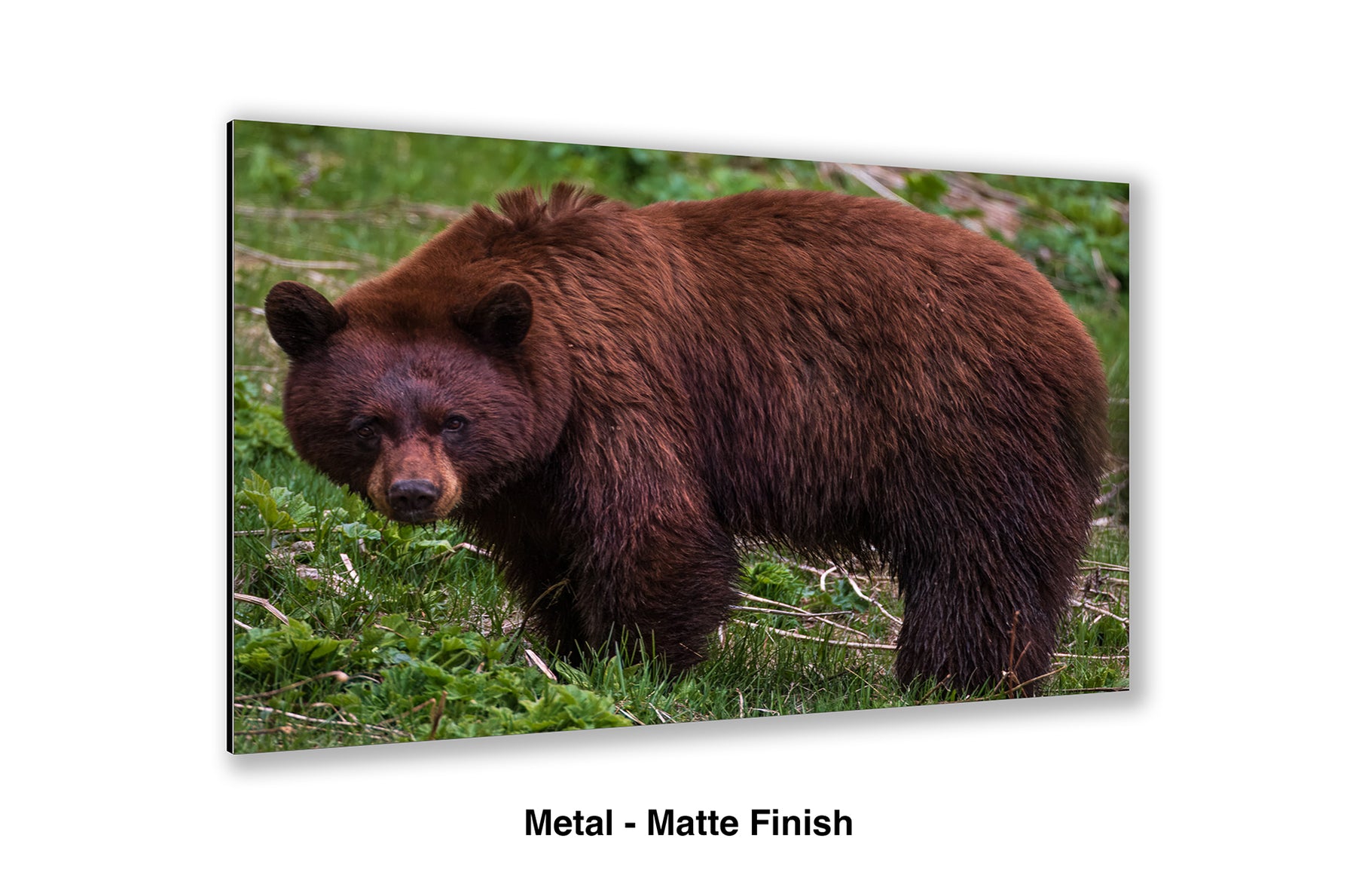 A healthy cinnamon black bear in Yellowstone National Park gorges on the surrounding fresh spring vegetation. Cinnamon bears get their unique color due to a genetic variant which causes an alteration in the coat’s pigmentation to a more cinnamon or copper color. These bears are mostly found in the western portions of the United States and Canada, while bears on the eastern side of these regions have the more familiar black fur known to black bears.