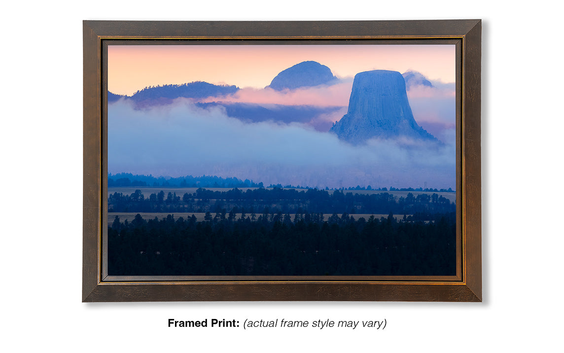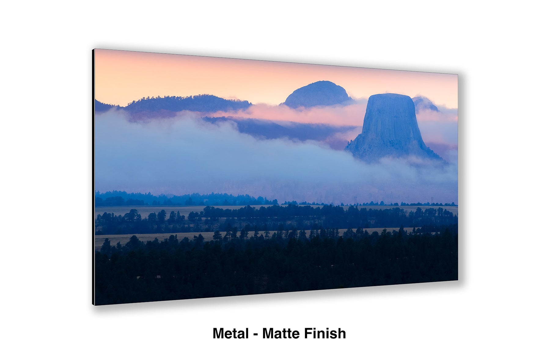 Rising 1,267 feet above the Belle Fourche River and standing 867 feet from base to summit, the geologic wonder Devils Tower sits 5,112 feet above sea level as an evening fog slowly clears to reveal the United States first national monument. Established on September 24th, 1906 by President Theodore Roosevelt the impressive rock formation is known as “The Bear Lodge” to many Native American tribes and is a sacred place to these people of the northern plains.