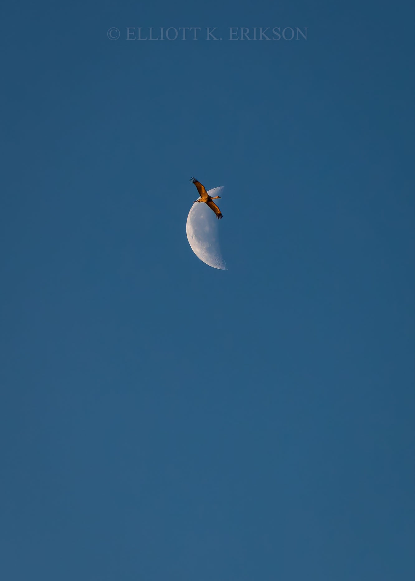 A sandhill crane briefly casts its image in front of the moon during its third-quarter phase which represents a time of transition and preparing for renewal. As the night transitions into day, winter too is transitioning into spring with Nebraska’s annual sandhill crane migration.