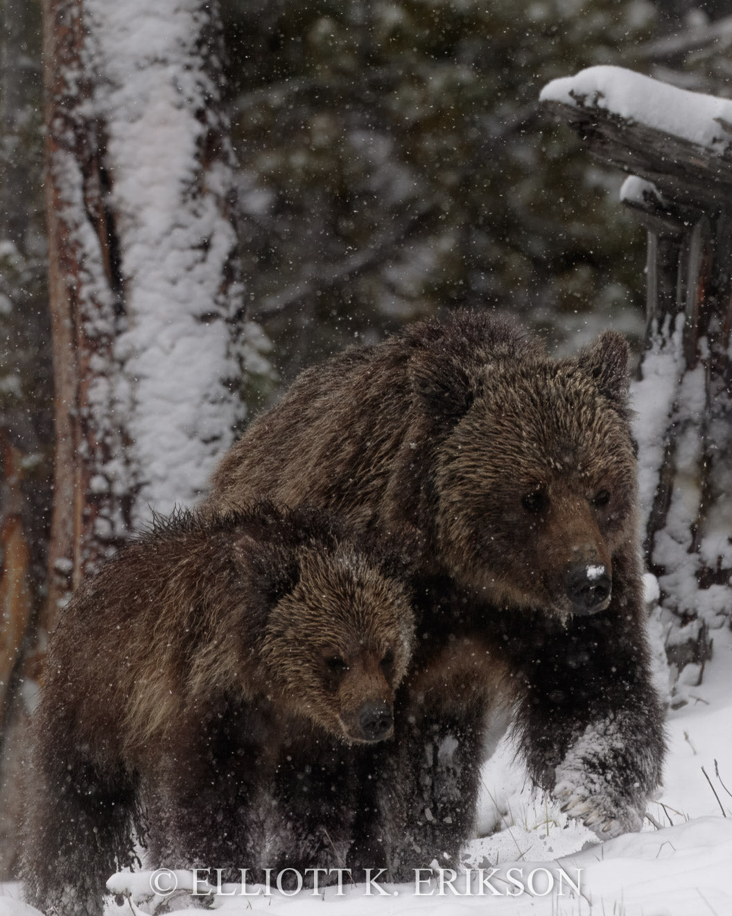 In Yellowstone a heavy snowstorm in late May catches both visitors and creatures alike off-guard. While a cold wind blows Grizzly sow Obsidian makes sure one of her three cubs stays close as she guides them through the freshly fallen snow.